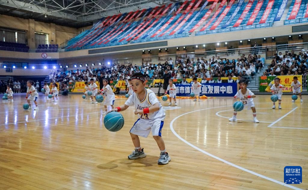 6月15日,小朋友在籃球文化節啟動儀式上表演籃球操。新華社記者 龍雷 攝