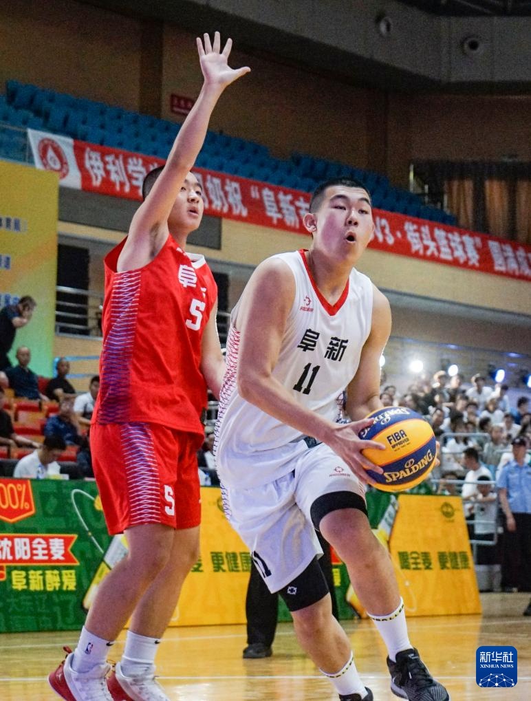 6月15日,籃校三隊球員王佳奧(右)在比賽中帶球進攻。新華社記者 龍雷 攝