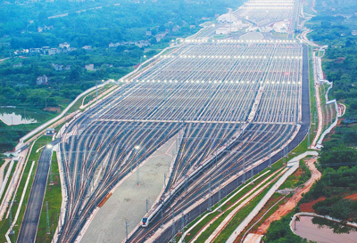 天府動車所位于四川天府新區(qū),規(guī)劃總面積約2090畝,有檢修線12條,能夠同時檢修24組標(biāo)準(zhǔn)動車組,可執(zhí)行每天90組標(biāo)準(zhǔn)動車組的檢修任務(wù)。