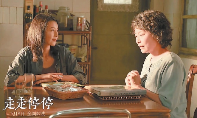 岳紅(右)在《走走停?!分酗椦菀晃活V请[忍豁達(dá)的母親。