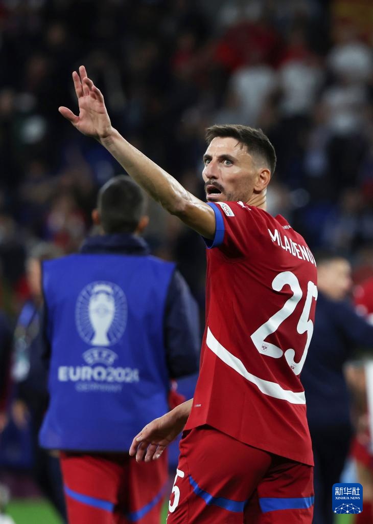 6月16日,塞爾維亞隊球員菲利普·姆拉德諾維奇賽后向觀眾席揮手。新華社記者 張帆 攝