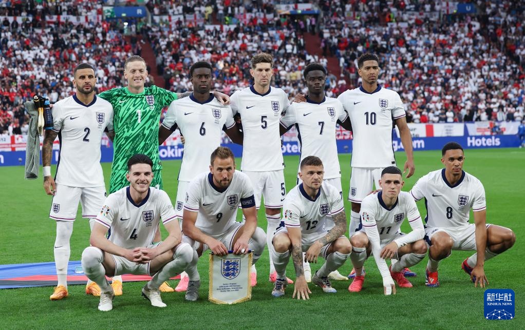 6月16日,英格蘭隊首發球員在比賽前合影。新華社記者 白雪飛 攝