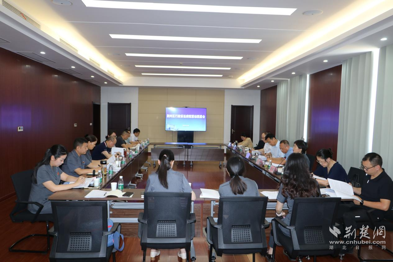 荊州區行政訴訟府院聯動聯席會在荊州區法院召開,區委、區政府、區委政法委、區檢察院、區司法局、區紀委監委、區營商辦等單位參加會議,簽署《行政機關正職負責人出庭應訴及實質性化解行政爭議倡議書》