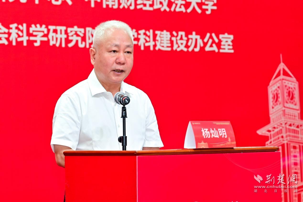 本次論壇由湖北省中國特色社會主義理論體系研究中心與中南財經政法大學聯合主辦,中南財經政法大學科學研究部、社會科學研究院、學科建設辦公室、經濟學部、法學學部、管理學部承辦,共安排1個主論壇和經濟學、法學、管理學3個方面的分論壇。論壇開幕式由中南財經政法大學黨委常委、副校長劉仁山主持,中南財經政法大學校長、黨委副書記楊燦明致辭,中共湖北省委宣傳部副部長趙理富講話。