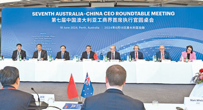 本報澳大利亞珀斯6月18日電 (記者王迪)當地時間6月18日上午,國務院總理李強在珀斯同澳大利亞總理阿爾巴尼斯共同出席第七屆中澳工商界首席執行官圓桌會并致辭。約30位中澳商會和企業負責人出席。