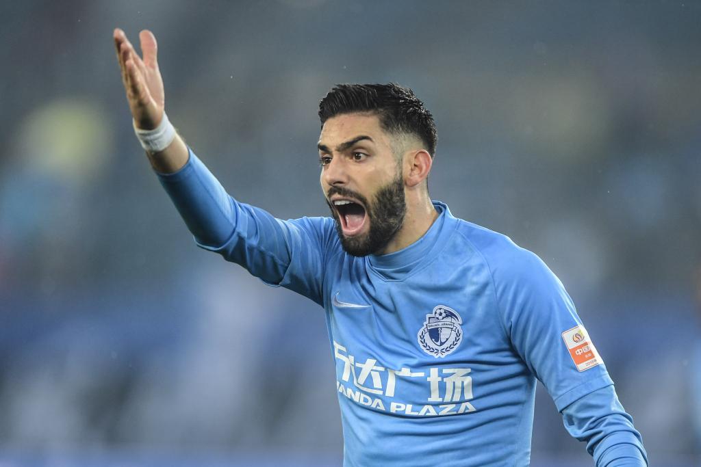 2019年11月24日,大連人隊球員卡拉斯科在比賽中示意裁判。新華社記者 潘昱龍 攝
