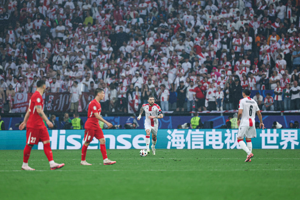 第31分鐘,科喬拉什維利右路下底掃到中路,米卡烏塔澤低射破門,格魯吉亞扳平比分1-1土耳其。