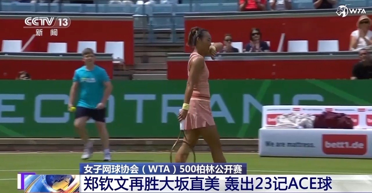 女子網球協會(WTA)500柏林公開賽18日進行的首輪單打正賽中,中國“金花”鄭欽文以2比1擊敗前世界第一大坂直美,取得對她的兩連勝并晉級次輪。鄭欽文在耗時130分鐘的比賽中共擊出23記ACE球,也就是發球直接得分且對手未觸球。這不僅創造了她個人職業生涯的單場ACE球新高,也刷新了WTA本賽季的單場ACE球紀錄。