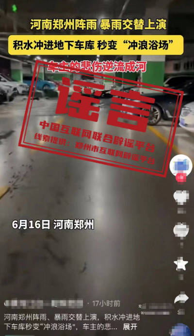 真相:近日,網上流傳內容為“6月16日,河南鄭州,積水沖進地下車庫”的視頻。經鄭州市金水區文化路辦事處證實,該視頻首發于2021年7月,并非2024年6月16日發生,視頻顯示畫面亦非視頻定位所在小區,該小區并未發生地下車庫進水情況。以上信息內容不實,系翻炒舊聞。(來源:鄭州市互聯網舉報和辟謠平臺)