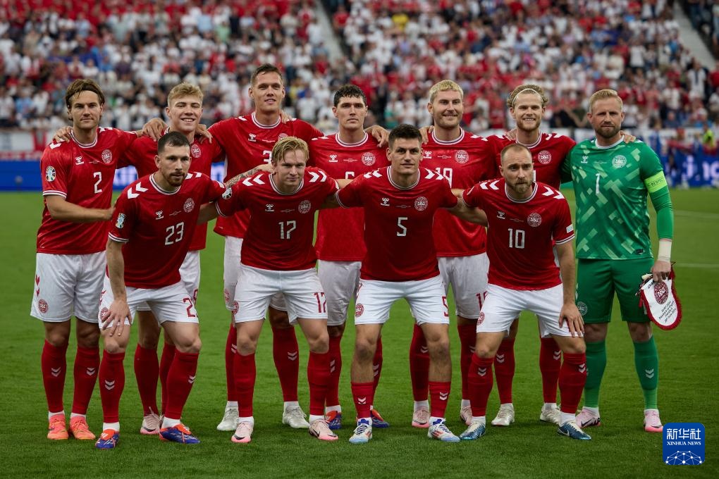 6月20日,丹麥隊首發球員在比賽前合影。新華社記者 孟鼎博 攝