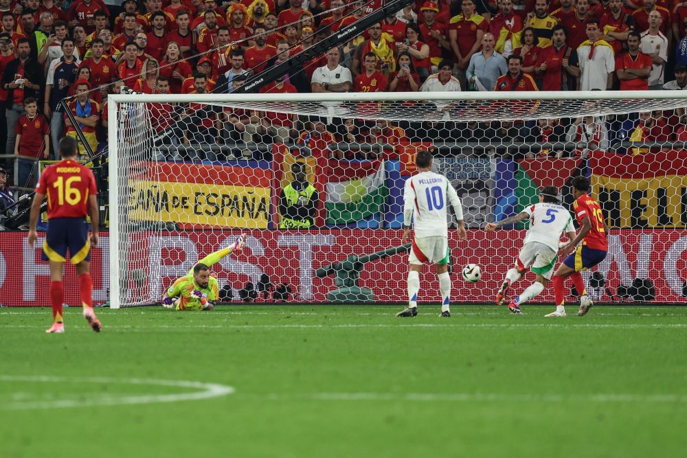 下半場西班牙隊延續攻勢,威廉姆斯繼續成為球隊爆點,與他對位的意大利隊邊后衛迪洛倫佐苦不堪言。第55分鐘,威廉姆斯邊路傳中,莫拉塔前點頭球攻門被唐納魯馬單掌撲出,但意大利隊后衛卡拉菲奧里避閃不及自擺烏龍,“斗牛士”軍團1:0領先。