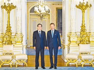 6月20日至21日,中共中央政治局常委、國務院副總理丁薛祥訪問盧森堡,分別會見盧森堡大公亨利、國民議會議長維斯勒、首相弗里登、副首相貝泰爾,出席第二屆鄭州—盧森堡“空中絲綢之路”國際合作論壇并致辭。這是6月20日,丁薛祥會見盧森堡大公亨利。 新華社記者 黃敬文攝 |