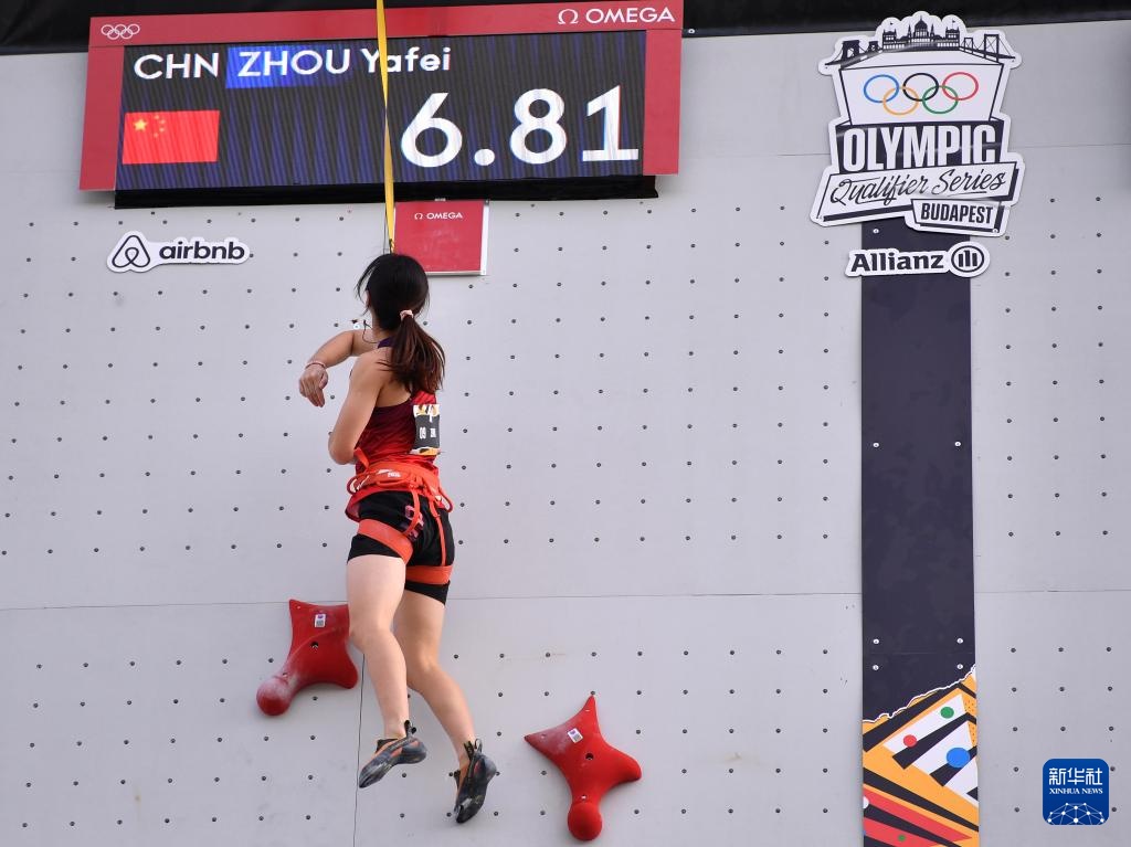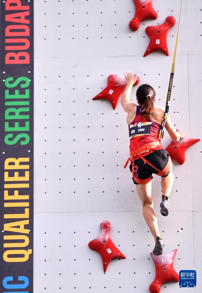 當(dāng)日,在巴黎奧運會資格系列賽布達佩斯站女子攀巖速度賽預(yù)賽中,中國選手周婭菲、牛迪、張少琴、汪生艷全部晉級16強。
