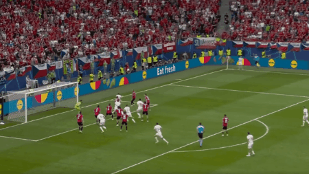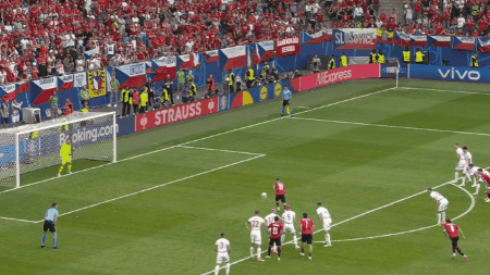 傷停補時第5分鐘,大舉壓上的捷克被打反擊,格魯吉亞形成3打1的絕佳機會。薩巴-洛布扎尼獲得單刀,然而面對捷克門將,他卻把這腳千載難逢的絕殺機會打了高射炮。最終,兩隊1比1握手言和。