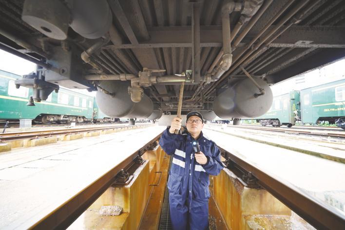 6月22日,武昌運用車間客車檢車員冒雨檢修武昌開往杭州方向的Z45次列車。近日,湖北多地出現強降雨天氣,武昌客車車輛段主動研判風險,采取多項措施確保客車運輸安全。 (湖北日報全媒記者 柯皓 通訊員 徐峰 王世龍 攝)