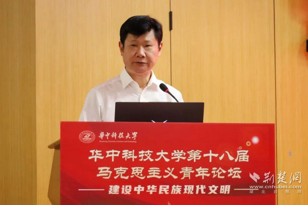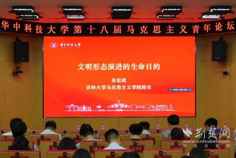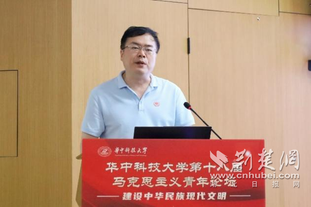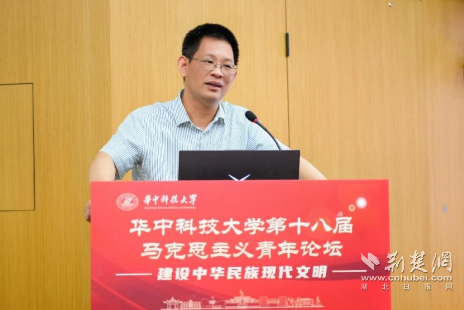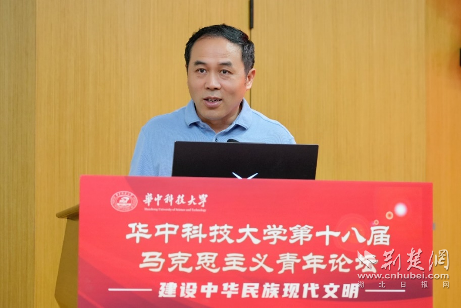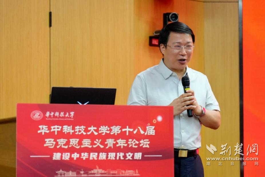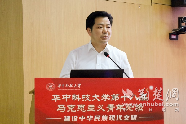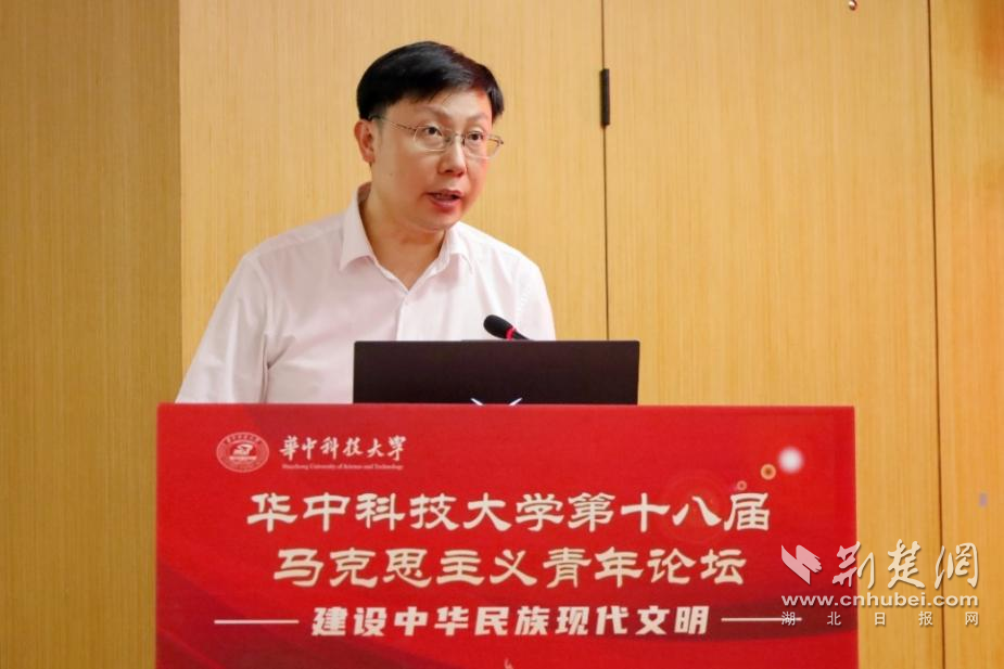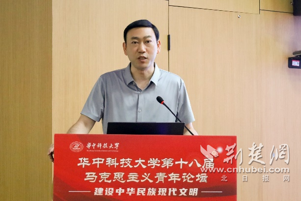 荊楚網(wǎng)(湖北日報網(wǎng))訊(通訊員 徐薇 楊夢楠)6月15日,由華中科技大學(xué)黨委宣傳部、共青團(tuán)華中科技大學(xué)委員會、華中科技大學(xué)馬克思主義學(xué)院、華中科技大學(xué)馬克思主義研究院、湖北省高校青年工作研究會、湖北省中國特色社會主義理論體系研究中心華中科技大學(xué)分中心共同舉辦的華中科技大學(xué)第十八屆馬克思主義青年論壇廳順利舉辦。來自該校和北京大學(xué)、武漢大學(xué)、吉林大學(xué)等多所高校和研究機(jī)構(gòu)的專家學(xué)者、青年學(xué)子共聚一堂,共同為中華民族現(xiàn)代文明和社會主義文化強(qiáng)國建設(shè)貢獻(xiàn)智慧。湖北省社科聯(lián)第九屆委員會主席、教授趙凌云,湖北省人大常委、人大教科文衛(wèi)委員會副主任喻立平,華中科技大學(xué)黨委副書記謝正學(xué),黨委宣傳部常務(wù)副部長詹健,團(tuán)委書記羅迪,人文社會科學(xué)處副處長童文勝,馬克思主義學(xué)院黨委書記王學(xué)東,院長岳奎,黨委副書記、副院長王明飛,馬克思主義研究院副院長梁浩偉以及來自全國各地高校的專家學(xué)者、青年學(xué)子共同參與此次會議。