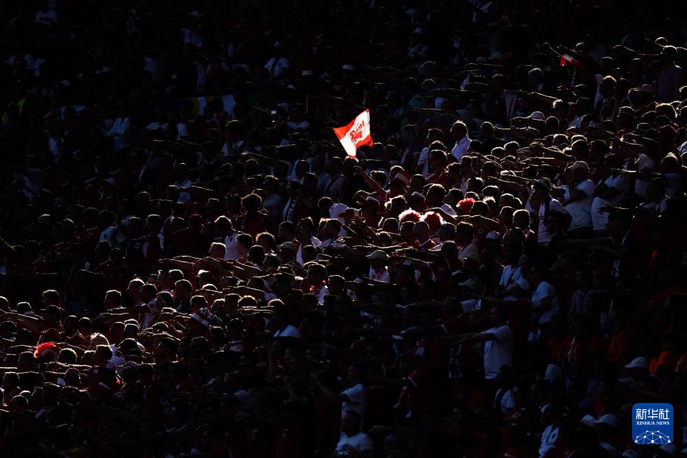 6月25日,奧地利隊球迷在場邊加油助威。新華社記者 彭子洋 攝