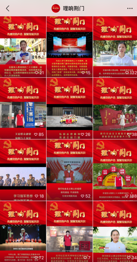 荊門市緊緊圍繞學習貫徹習近平新時代中國特色社會主義思想和黨的二十大精神這條主線,運用互聯網思維整合各類新媒體資源,著力打造理“響”荊門“1+N”系列微宣講品牌,建立理“響”荊門系列微信視頻號及微宣講視頻號,采取情景劇、實地探訪、互動交流等多種方式,融入湖北大鼓、快板、皮影戲等多種文化形式,將理論宣講舞臺搬出會議室,搬進鄉村旅游景點、新時代文明所站、公交車、公園、體育館等充滿生活氣息的場所,再搬進互聯網平臺,讓廣大群眾參與到理論宣講中來。將“大道理”融入“小視頻”,以“小切口”展現“大主題”,組織各地推出微宣講視頻100余期,《理響京山·弘揚紅色文化 傳承紅色基因》《堅持綠色發展,推動鄉村振興》《良好家風代代傳》《賡續紅色血脈,共建清廉村居》等微視頻網絡點擊量超800萬人次。