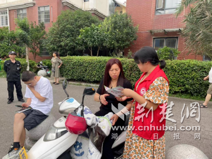 圖說:張居正社區(qū)工作人員正在發(fā)放禁毒宣傳冊