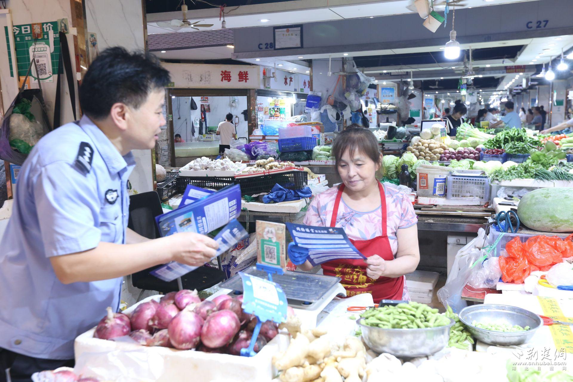 “在灄口街道辦事處的支持下,我們在人員較為密集場所的電線桿旁都放置了滅火器,當有火情發生時,附近群眾可以第一時間拿到滅火器自救!”民警賀廣武向大家介紹,隨后與其他民警輔警一起向市場的商戶們發放消防安全知識宣傳單。