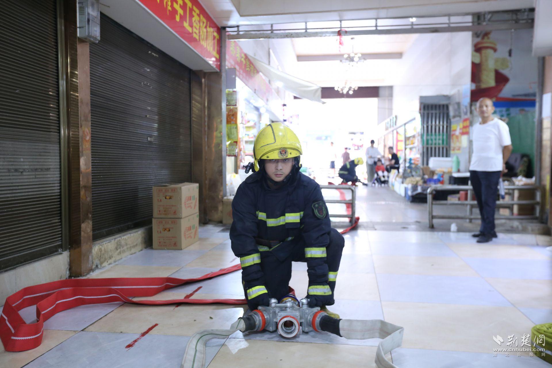 荊楚網(湖北日報網)訊(通訊員 周劍波 李慧敏)6月27日上午,一輛鮮紅的消防救援車停在了武漢市黃陂區灄口街集貿市場的門口。不過別擔心,此刻并沒有火情發生,這里正在開展一場別開生面的消防應急演練。
