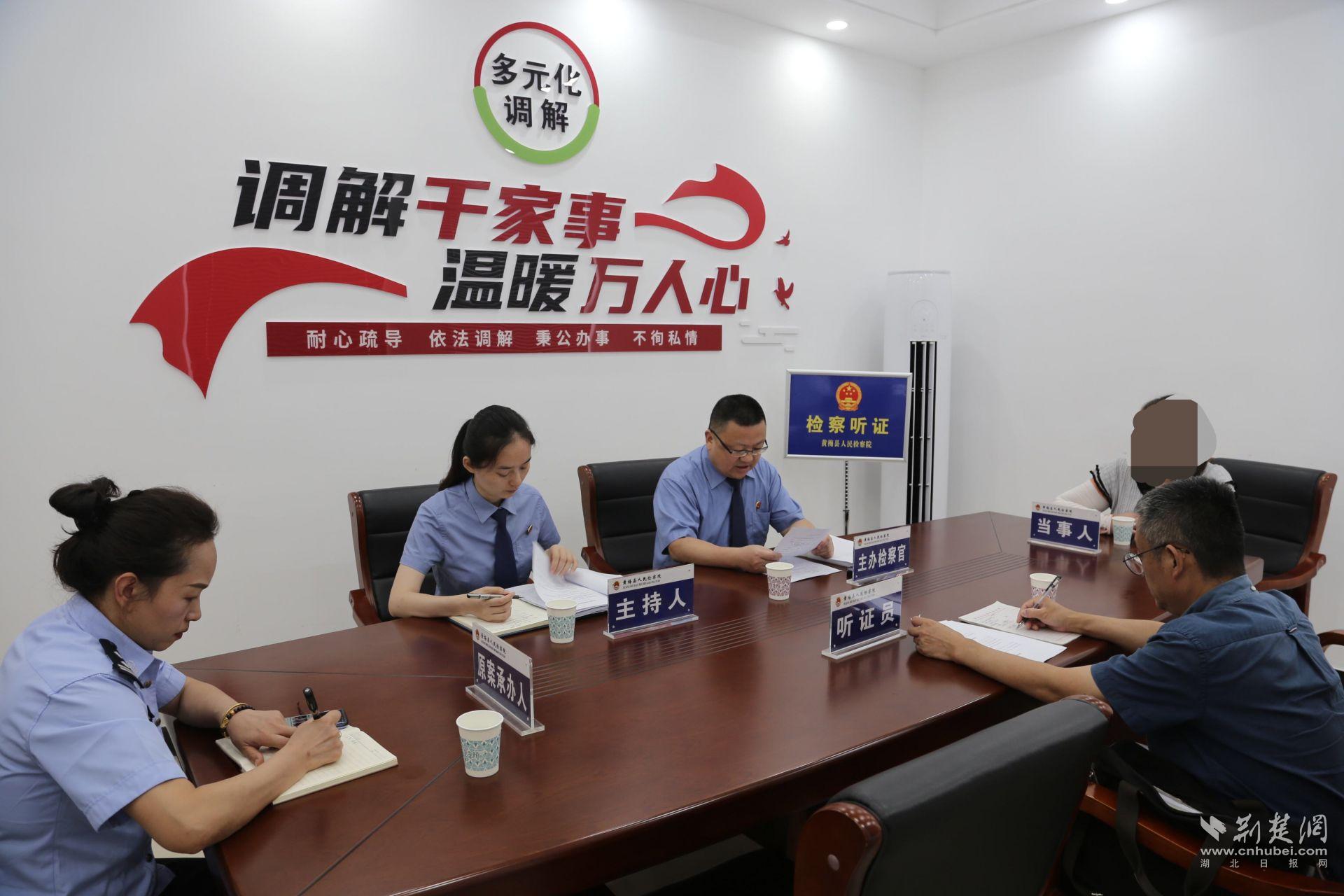 6月26日下午,黃梅縣檢察院在該縣綜治中心對兩起案件召開擬不起訴公開聽證會,并邀請聽證員、原案承辦人參加聽證。