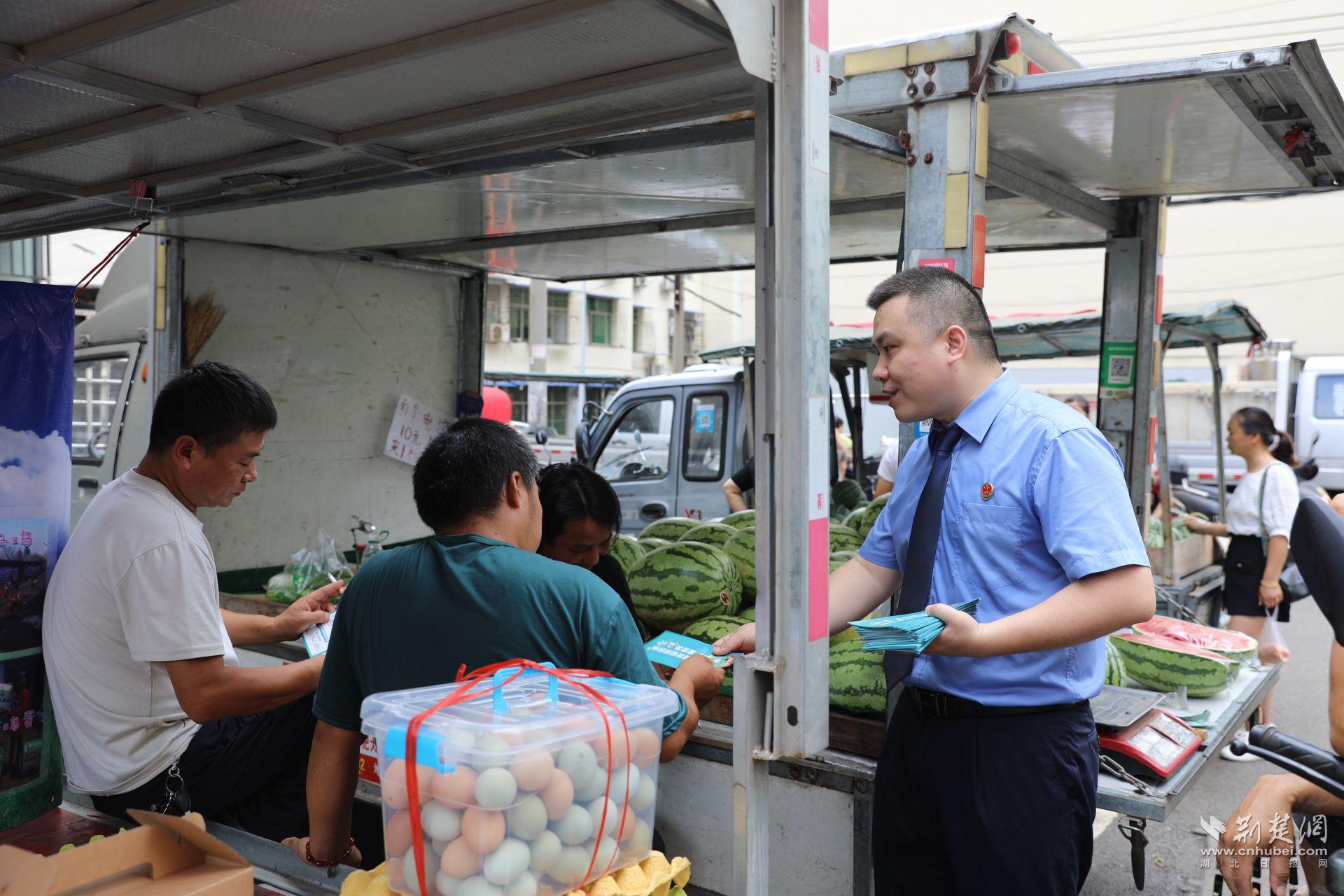 檢察干警給商販發放宣傳單頁。通訊員供圖