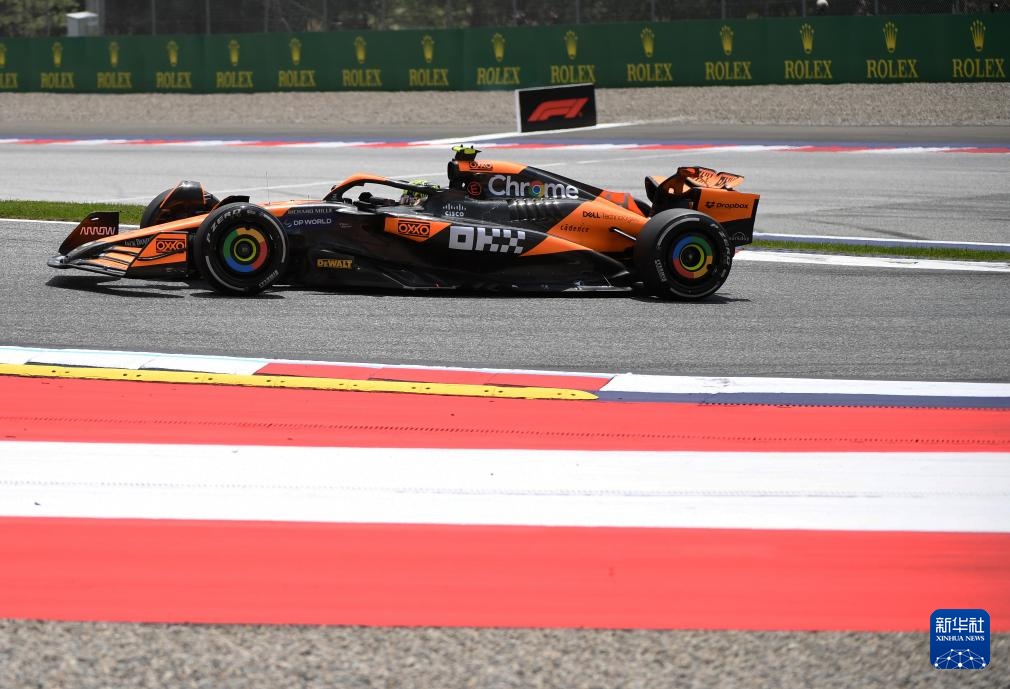 6月28日,邁凱倫車隊英國車手諾里斯駕駛賽車在練習賽中。新華社記者 賀燦鈴 攝