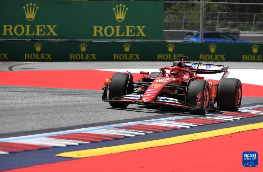 6月28日,法拉利車隊摩納哥車手勒克萊爾駕駛賽車在練習賽中。新華社記者 賀燦鈴 攝