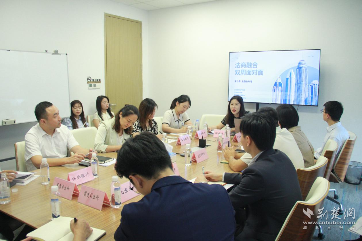 會(huì)場同步開展了“法商融合面對(duì)面”活動(dòng),來自武漢市中級(jí)人民法院、江漢區(qū)人民法院、上海蘭迪(武漢)律師事務(wù)所、北京市天元(武漢)律師事務(wù)所、湖北忠三律師事務(wù)所的法律人士,與武漢金融街集團(tuán)、中國銀行等6家金融機(jī)構(gòu),共同面對(duì)面交流資本市場服務(wù)、科技金融創(chuàng)新、知識(shí)產(chǎn)權(quán)服務(wù)等熱點(diǎn)話題。