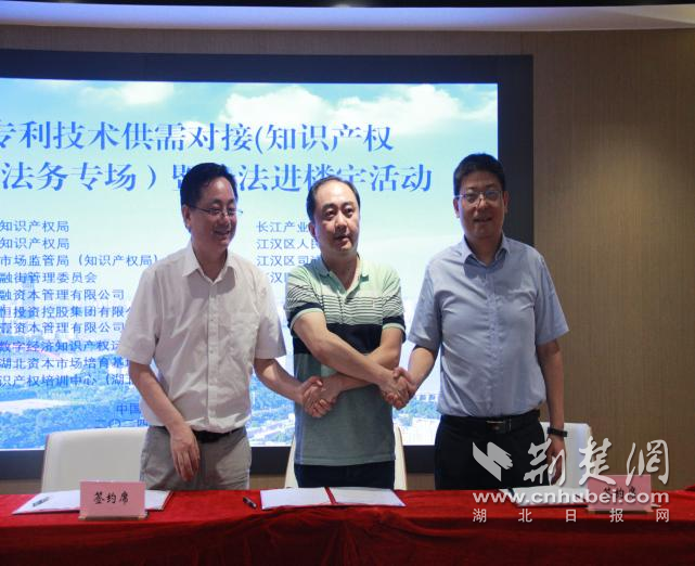 10家單位分別與武漢理工大學(xué)等6所高校進(jìn)行專利轉(zhuǎn)讓現(xiàn)場簽約,6家金融機(jī)構(gòu)與武漢金融街管委會(huì)、湖北產(chǎn)融公司簽訂科技金融合作協(xié)議,30余家企業(yè)發(fā)布企業(yè)專利需求。湖北產(chǎn)融公司聯(lián)合武漢工程大學(xué)、湖北郵電設(shè)計(jì)院等單位發(fā)起成立武漢數(shù)據(jù)知識(shí)產(chǎn)權(quán)服務(wù)聯(lián)盟。