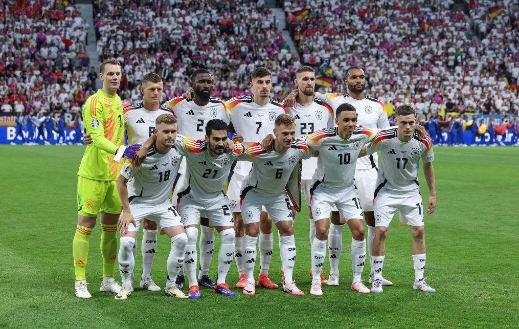 6月23日,歐錦賽A組第三輪比賽前,德國隊首發球員合影。新華社記者 白雪飛 攝