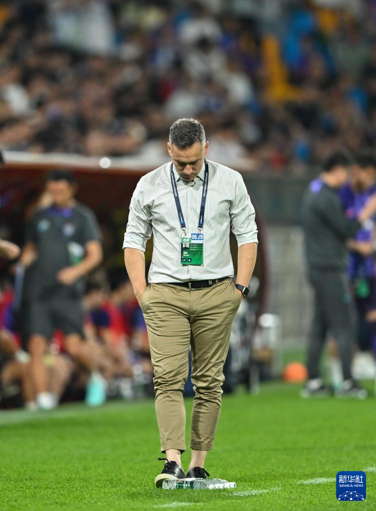 6月29日,深圳新鵬城隊主教練赫蘇斯·塔托在場邊低頭踱步。新華社記者 孫凡越 攝