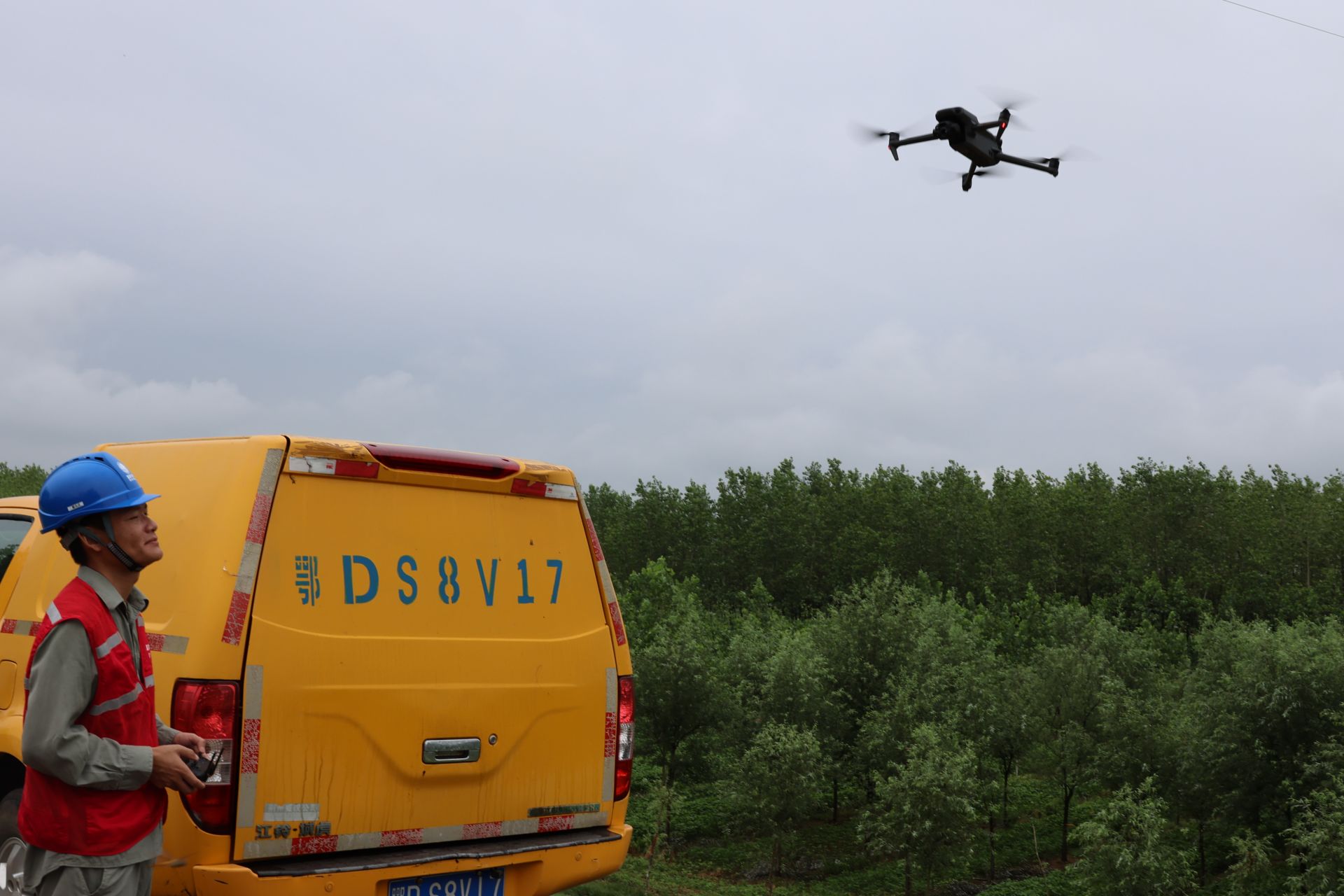 在團(tuán)山寺鎮(zhèn)35千伏肖團(tuán)線大跨越段桿塔特巡現(xiàn)場(chǎng),該公司輸電運(yùn)檢班班員正操控著無(wú)人機(jī)全方位、多角度地對(duì)線路及桿塔進(jìn)行巡檢。由于暴雨過(guò)后,道路泥濘,部分區(qū)域積水嚴(yán)重,傳統(tǒng)的人工巡視方式不僅效率低下,而且存在安全風(fēng)險(xiǎn),而無(wú)人機(jī)憑借其靈活高效的特點(diǎn),能夠快速穿越復(fù)雜地形和惡劣環(huán)境,通過(guò)更廣的視角采集電力線路設(shè)備的運(yùn)行狀態(tài),幫助運(yùn)維人員克服巡線中視野盲區(qū)和視覺(jué)差帶來(lái)的影響,對(duì)平時(shí)肉眼看不到的死角、可能存在的缺陷隱患進(jìn)行拍照錄像,有效提升排查效率,讓巡視更加安全高效。