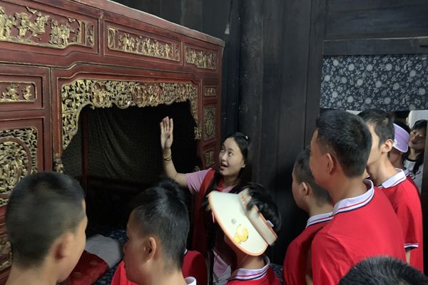 “哇,這樣的床我從來沒看到過,上面的花紋好精致呀”“古代的人真聰明呀,連床都雕得這么好看……”雕花精美的木床、衣柜、太師椅,讓師生連聲稱贊,久久駐足,不愿離去。