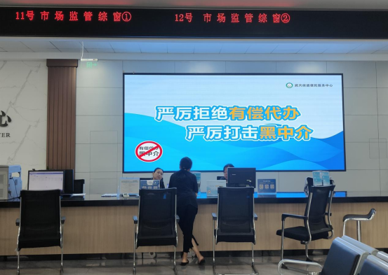 活動中,便民服務中心通過在大廳電子顯示屏滾動播放“嚴厲拒絕有償代辦、嚴厲打擊黑中介”的警示標語、門口顯眼位置張貼公告、政務新媒體宣傳等形式使廣大辦事群眾知曉,切勿輕信個人或部分“中介機構”的虛假承諾,避免上當受騙,共同抵制。