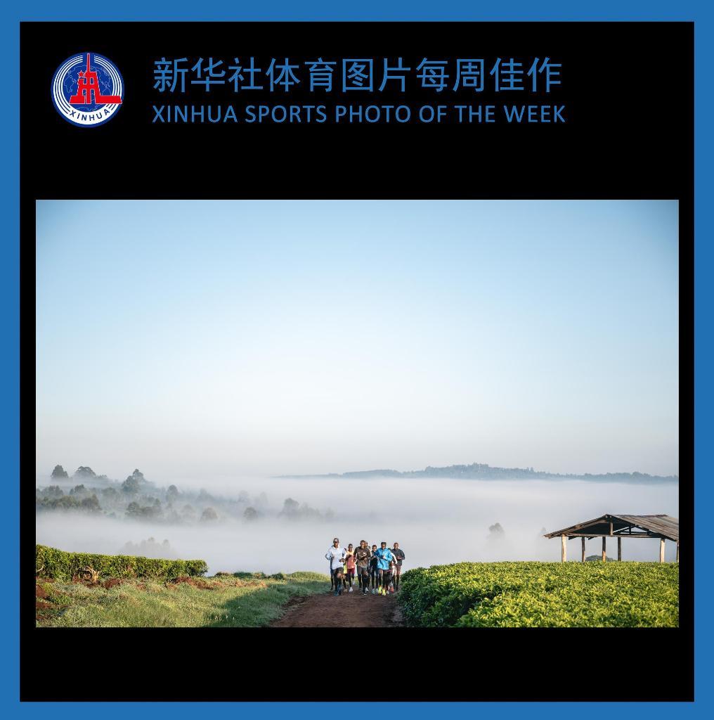 在肯尼亞西部南迪郡,佩里娜·洛庫雷·納康與隊友在高原茶地間訓練(6月22日攝)。今年5月,國際奧委會公布了巴黎奧運會難民代表團名單,名列其中的佩里娜·洛庫雷·納康將參加田徑女子800米項目,在盛夏逐夢巴黎。
