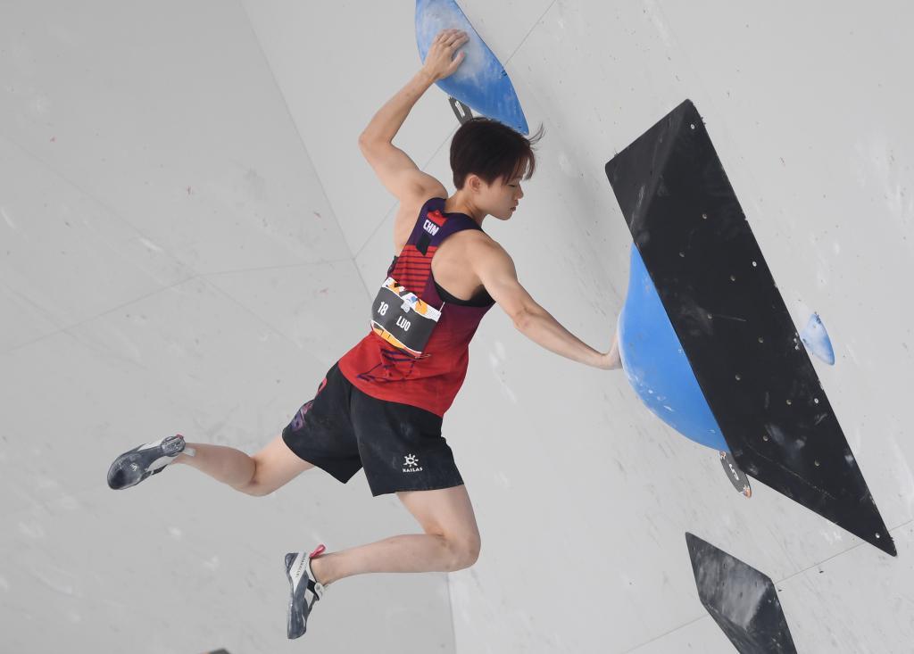 6月23日,中國選手駱知鷺在巴黎奧運會資格系列賽布達佩斯站攀巖女子兩項全能決賽中。新華社記者 賀燦鈴 攝
