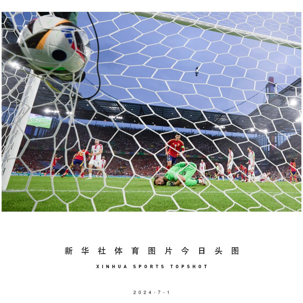當日,在德國科隆進行的2024歐洲足球錦標賽八分之一決賽中,西班牙隊4比1戰勝格魯吉亞隊,晉級八強。