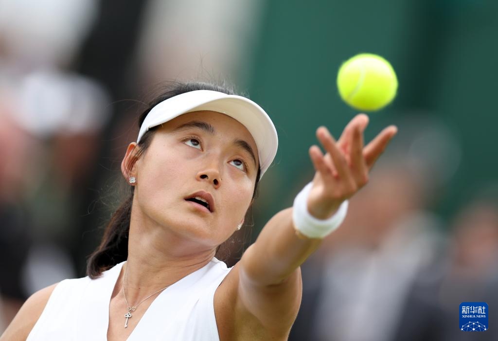 7月1日,王雅繁在比賽中發球。新華社記者 李穎 攝