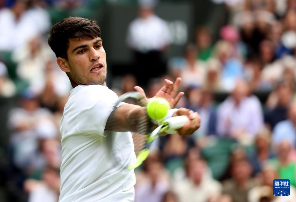 7月1日,阿爾卡拉斯在比賽中回球。新華社記者 李穎 攝