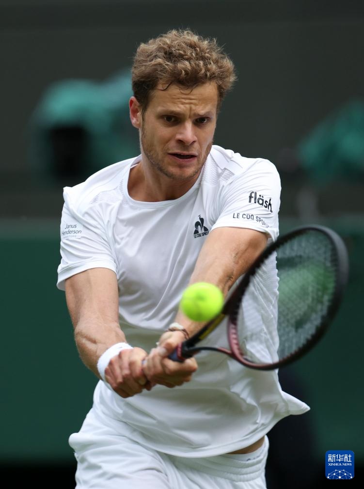 7月1日,漢夫曼在比賽中回球。新華社記者 韓巖 攝