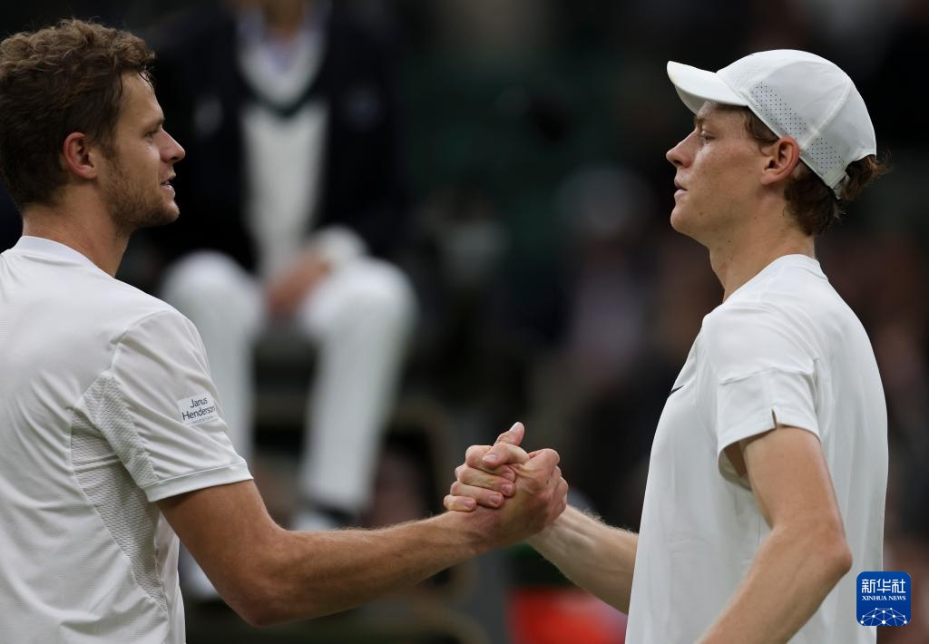 當日,在英國倫敦舉行的2024溫布爾登網球公開賽男子單打首輪比賽中,意大利選手辛納3比1戰勝德國選手漢夫曼,晉級下一輪。