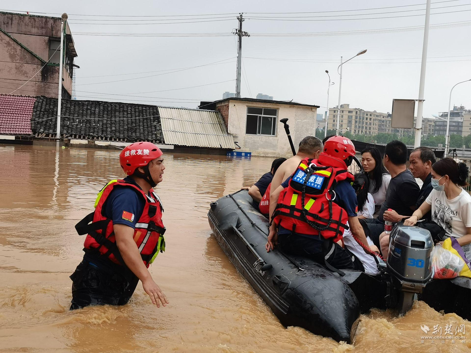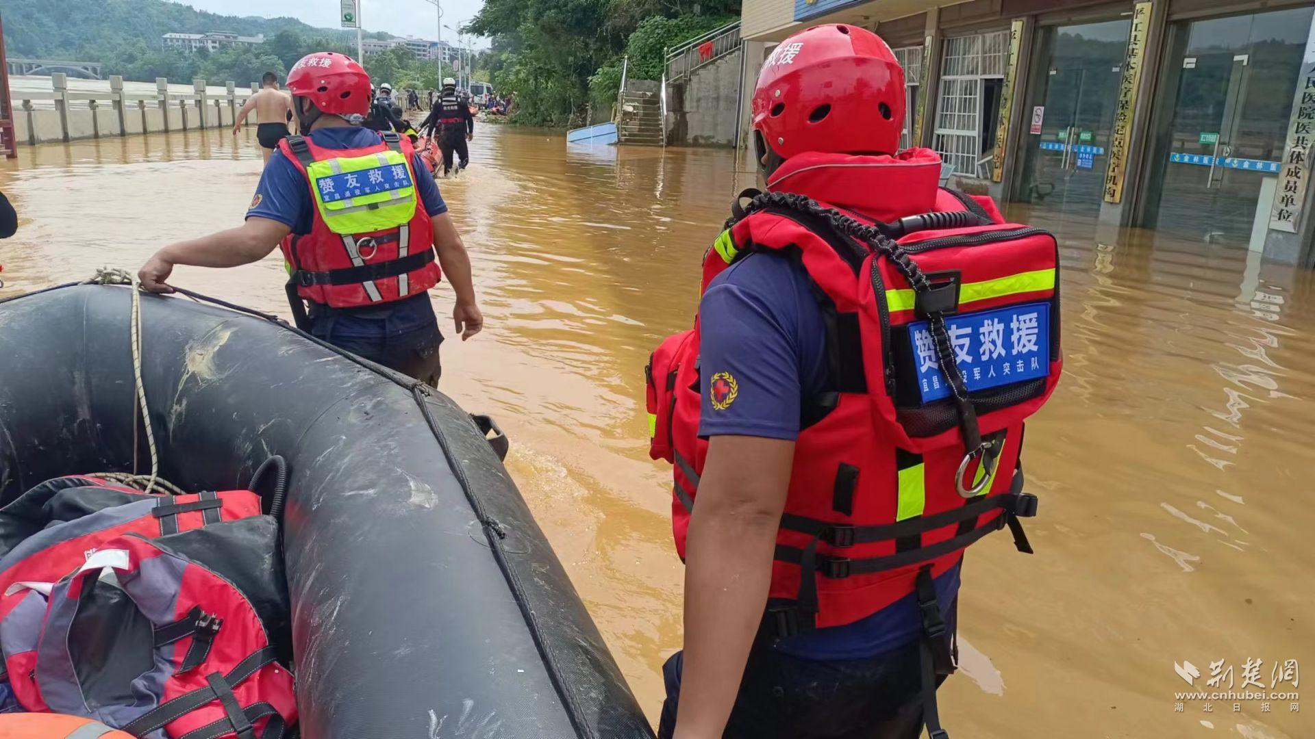 “我們的四名隊員攜帶了兩艘沖鋒舟,一塊槳板,十幾件救生衣,凌晨一點從宜昌出發,早上七點鐘到達平江,和當地的應急指揮中心聯系后,立刻投入救援工作。枝江15名隊員處于戰備狀態,城區的近30名隊員也處于戰備狀態。”宜昌“贊友”退役軍人志愿服務隊隊長、退役軍人王博說。