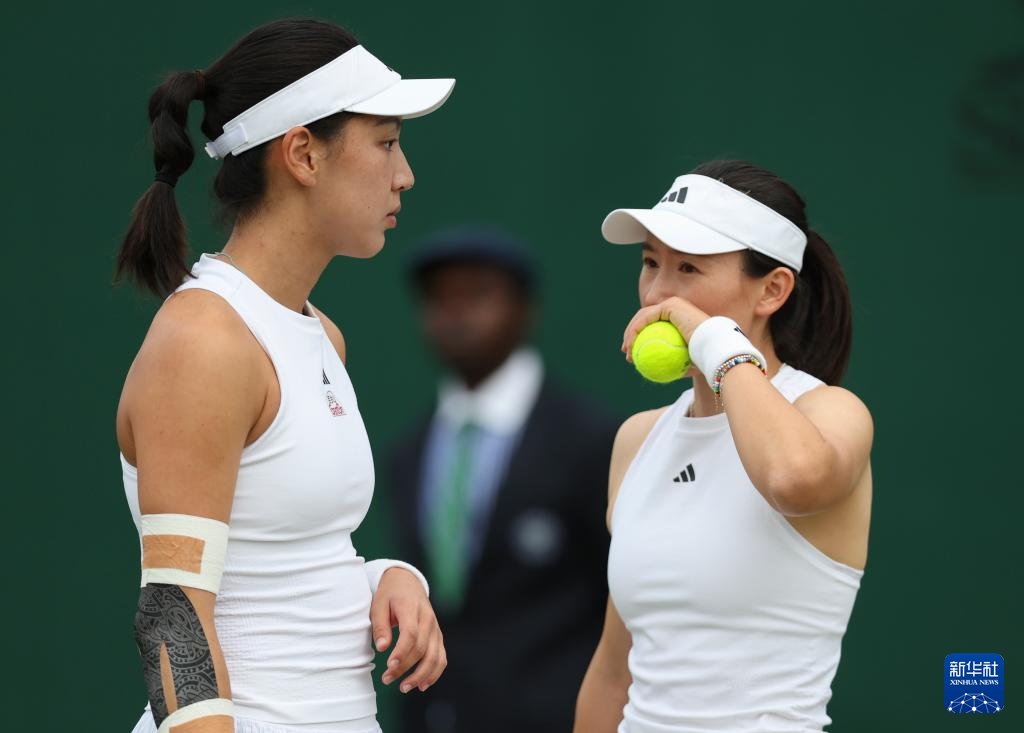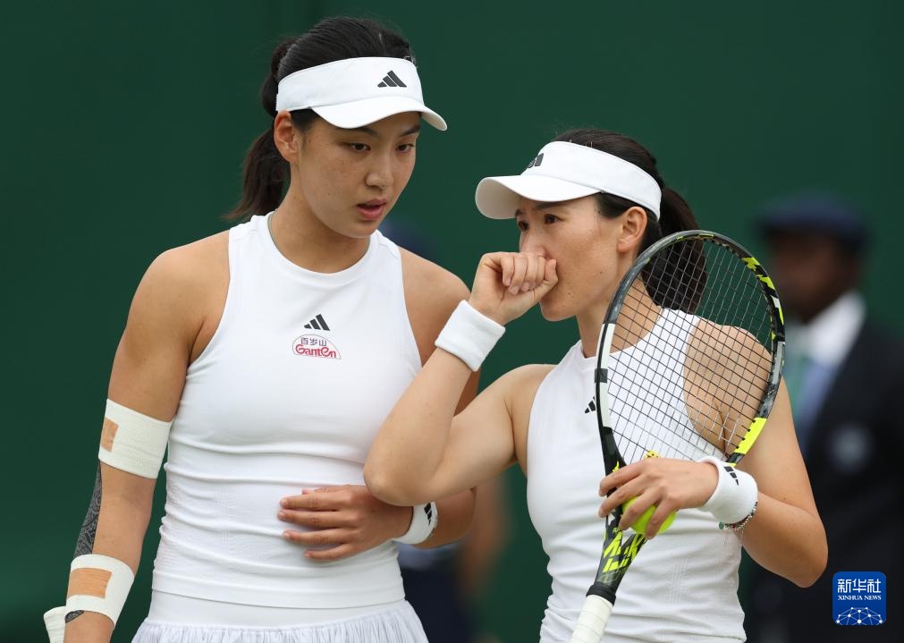 7月3日,王欣瑜(左)/鄭賽賽在比賽中交流。新華社記者 韓巖 攝