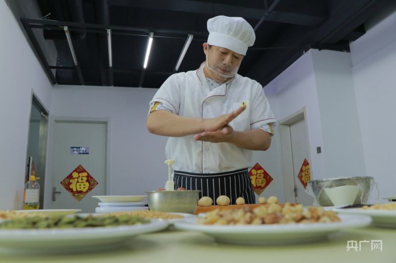 于艷寧正在制作月餅(央廣網(wǎng)記者 周思楊 攝)