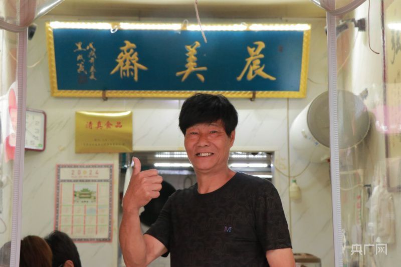 早上8點(diǎn)剛過,西北角一帶已經(jīng)被各地前來探店的游客“包圍”。在擁擠的人潮中不斷閃轉(zhuǎn)騰挪,記者才終于來到晨美齋店前。一把粉絲、一碗素鹵、一勺由小蝦皮和韭菜組成的餡料,簡(jiǎn)單的食材就這樣碰撞出一碗鮮氣四溢的“粉湯”。食客絡(luò)繹不絕,店鋪“掌門人”張學(xué)強(qiáng)和愛人前后忙碌不停,小店內(nèi)溫馨又幸福。