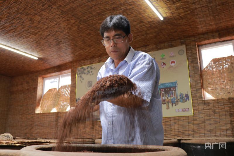 陳明友在翻動(dòng)原料(央廣網(wǎng)記者 周思楊 攝)