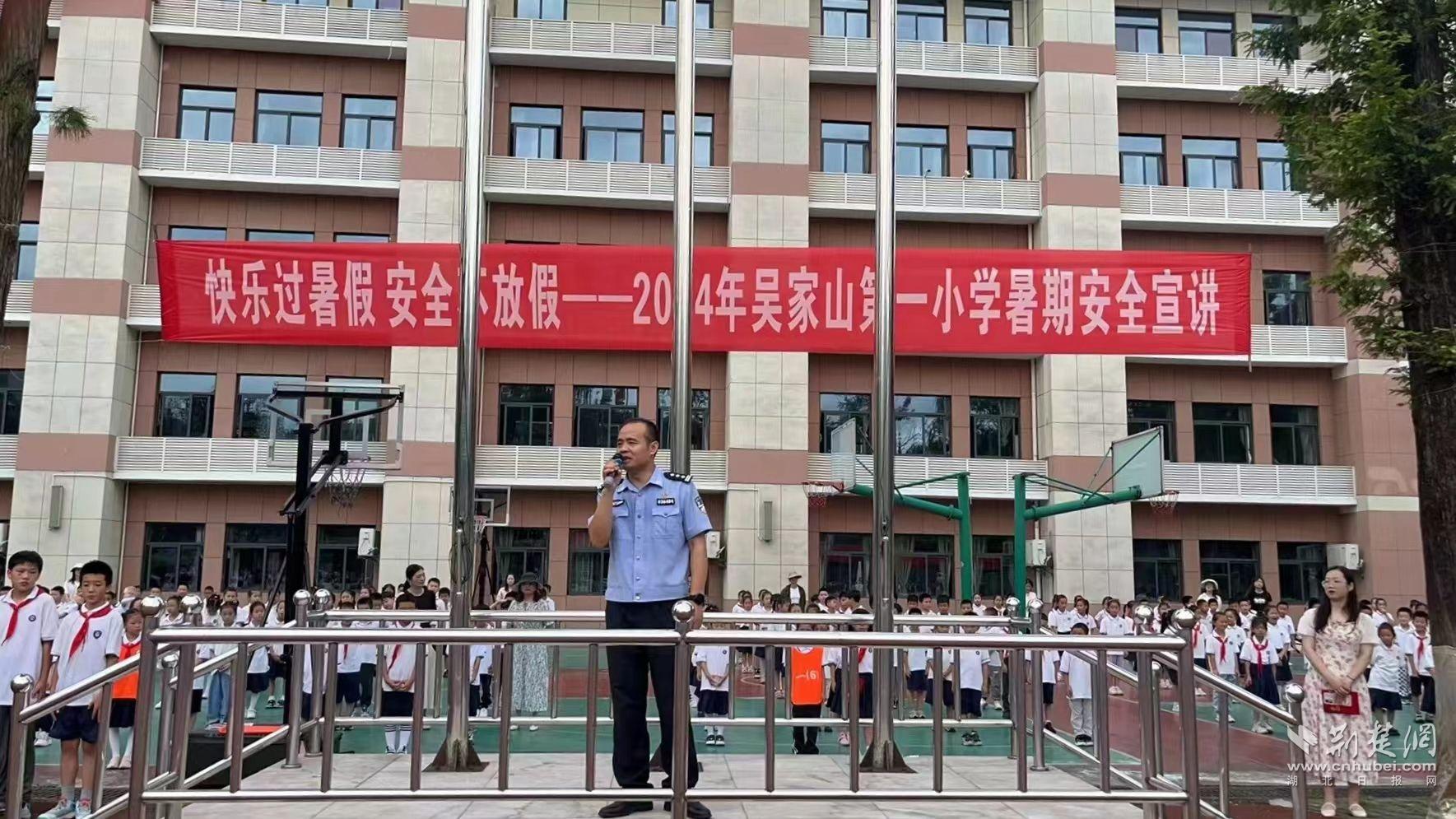 同樣在7月4日上午,東西湖吳家山一小散學典禮正在開展,吳家山街派出所副所長吳建友、民警蘇金煥以“堅決對欺凌行為說不”為主題,結合具體案例,深入淺出地向同學們介紹了校園欺凌的表現形式、危害以及應對方法,著力提升青少年自我保護能力。