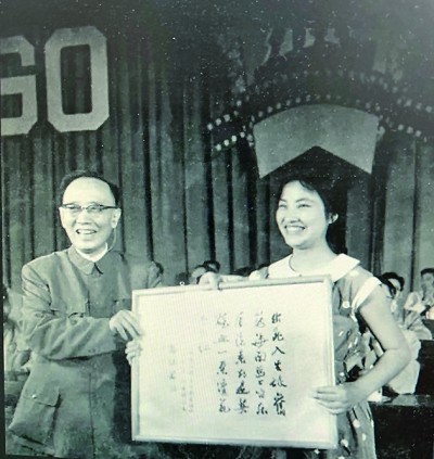 郭沫若向《紅色娘子軍》女演員祝希娟授予最佳電影女演員獎(jiǎng)。 作者提供